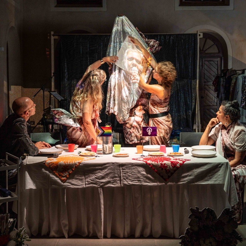 PerformanceZwei feministische Kollektive aus Bangalore und Berlin begegnen sich, um die Gesetze der Gastfreundschaft zu untersuchen. Das diplomatische Protokoll dient als Vorlage für einen Austausch, bei dem wir gegenseitig zu Gastgeberin oder Gast werden. „Wait To Be Seated“ entwirft in einem entrückten Nirgendwo einen Parcours der Gastlichkeit mit Esstisch, rotem Teppich und Tanzfläche. She She Pop und Sandbox Collective nähern sich einander von entgegengesetzten Seiten und eröffnen einen neuen Horizont der Begegnung. |