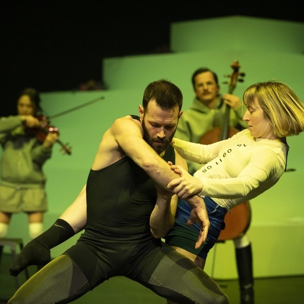 TOURNAMENTAdam Linders Choreografien verbinden innovative Bewegungsansätze, Virtuosität und Performativität, brechen mit Konventionen und halten der Disziplin selbst den Spiegel vor. Zu einer Auftragskomposition von Ethan Braun verwandelt sich die Bühne in ein Spielfeld, auf dem fünf Tänzer*innen und fünf Musiker*innen vom Solistenensemble Kaleidoskop den Mythos der harmonischen Einheit zwischen diesen beiden Disziplinen auf die Probe stellen. |