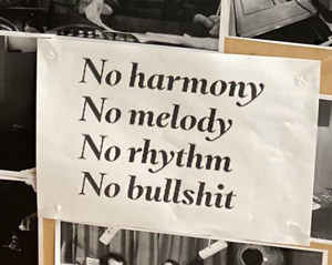 Phill Niblock Zitat an der Tür des elektronischen Studios in der Musikhochschule Lübeck. (photo nicola hein)